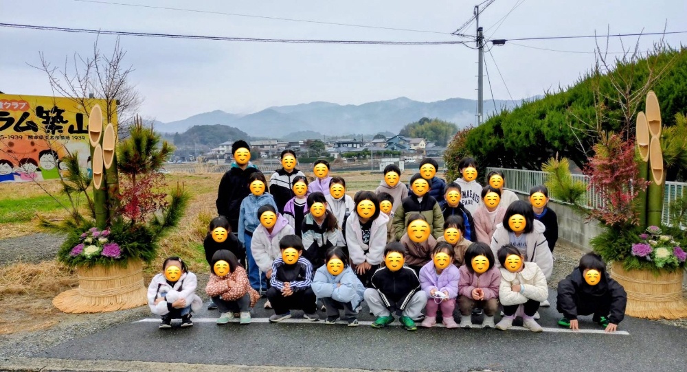 立派な門松を立てていただいたので施設の入り口前で記念写真を撮りました。
